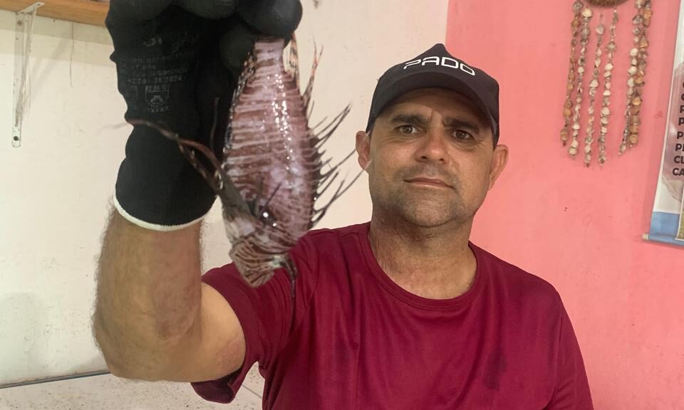 PRIMEIRO PEIXE-LEÃO É ENCONTRADO NO PONTAL DO PEBA DURANTE TRIAGEM DE CAMARÕES