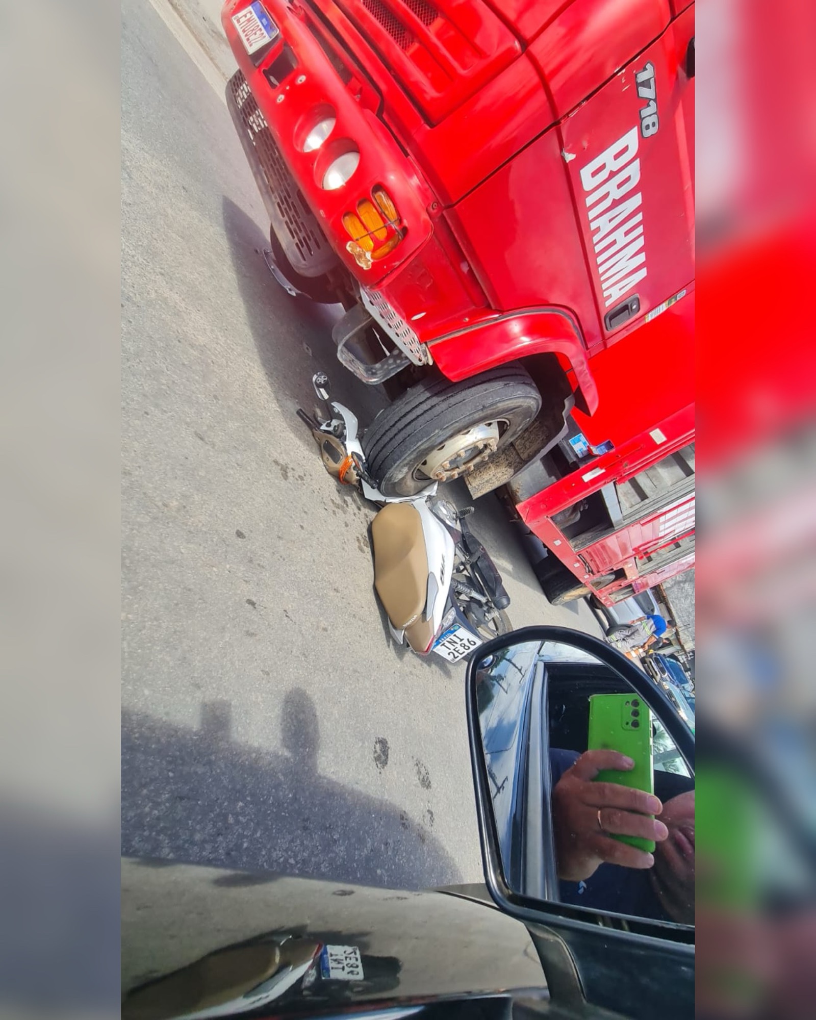 Um acidente de trânsito foi registrado na rodovia Engenheiro Joaquim Gonçalves, em frente à Disbec Distribuidora de Bebidas, envolvendo um caminhão de entrega de bebidas e uma motocicleta modelo Honda Biz.