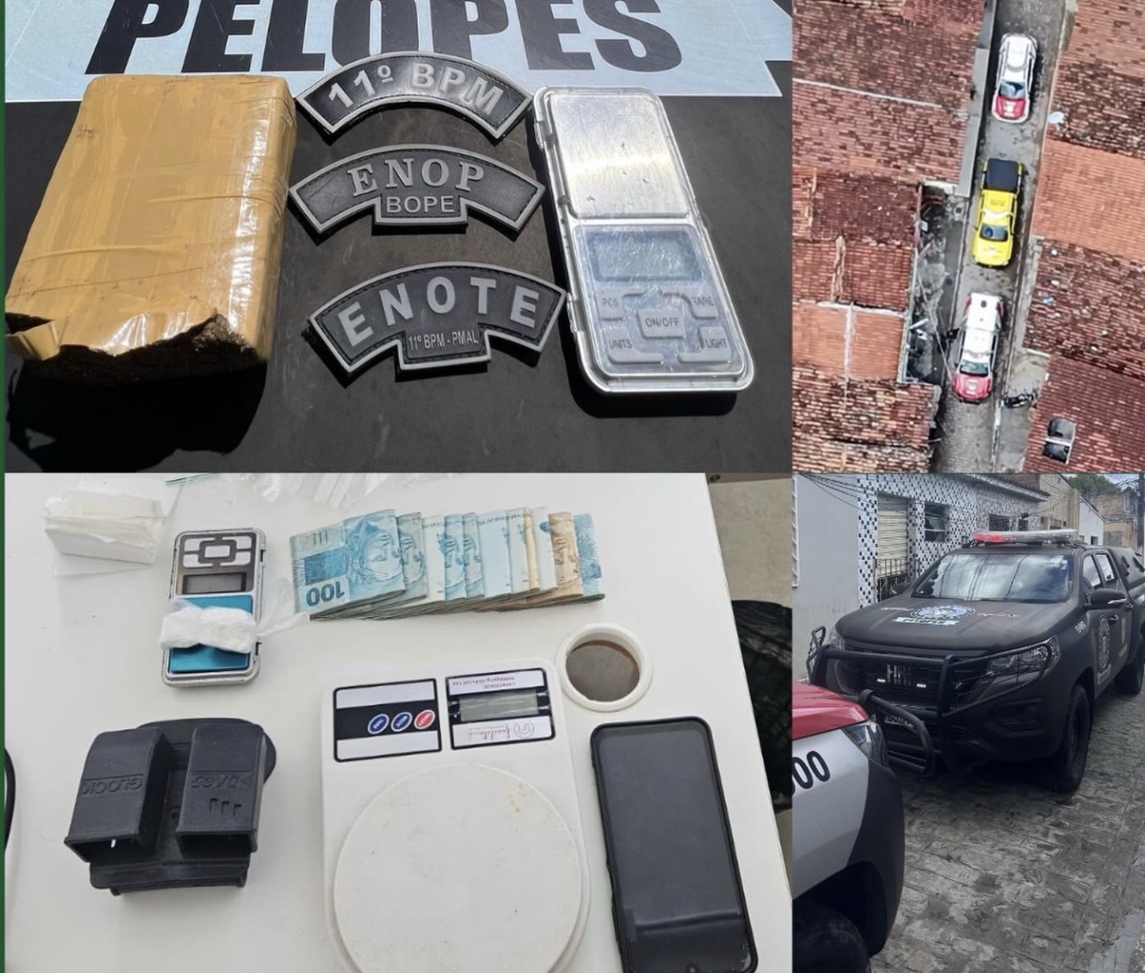 Durante o cumprimento dos mandados, foram apreendidos no Alvo 01 (F.) dois aparelhos celulares (Xiaomi Redmi e Samsung); no Alvo 02 (J.), um tablete de maconha pesando 329g; no Alvo 04 (D.), um aparelho celular Samsung Galaxy A5 e um rolo de papel filme PVC; no Alvo 05 (D.), uma balança de precisão, um estojo contendo R$ 11.000,00 em espécie, um cartão do Bolsa Família, dois cartões bancários, além de documentos pessoais e anotação com senha; e no Alvo 07 (D.), 17g de cocaína, uma balança de precisão e materiais utilizados para acondicionamento de drogas. A Operação Bastida reforça o compromisso do 11° BPM no combate ao crime organizado, atuando de forma integrada e estratégica para garantir a segurança da população do Baixo São Francisco.