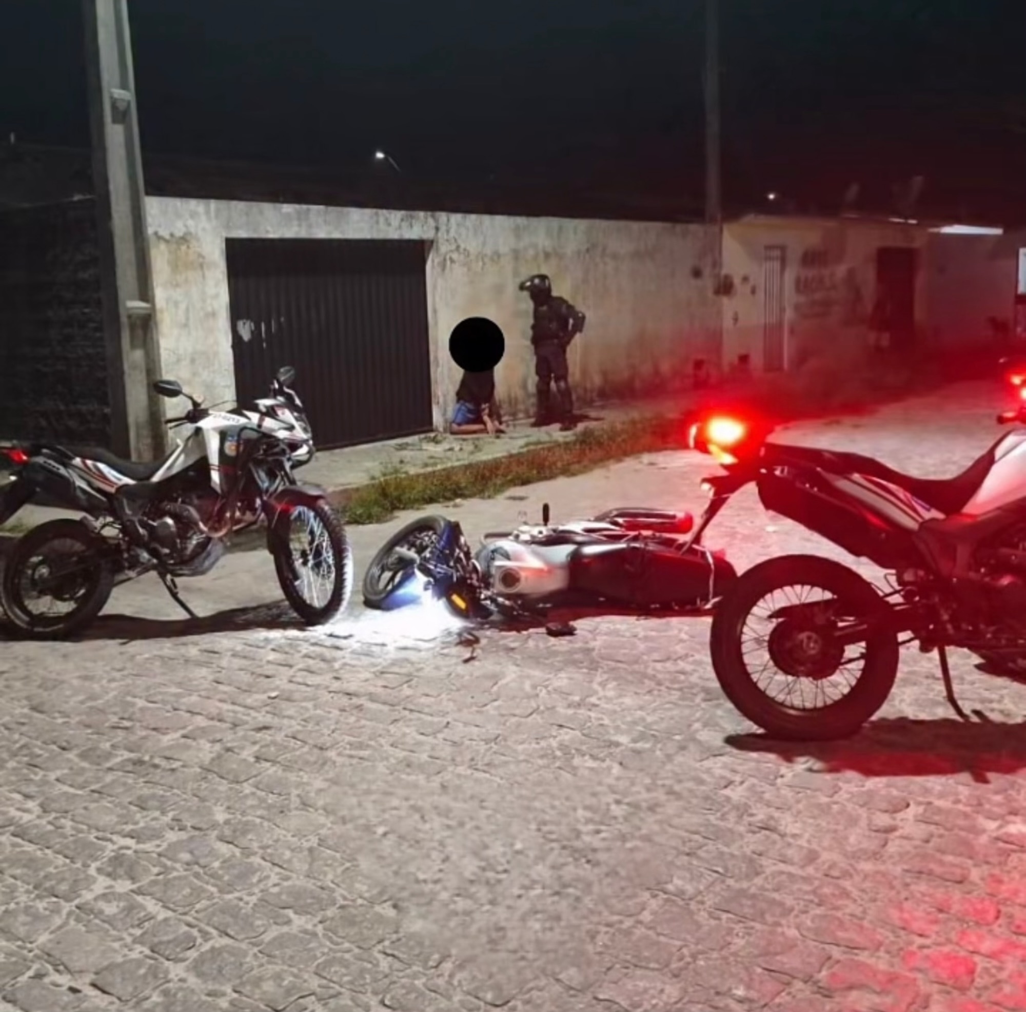 A perseguição terminou quando o condutor perdeu o controle da motocicleta e caiu nas proximidades do Conjunto Mata Atlântica I, no bairro Raimundo Marinho.