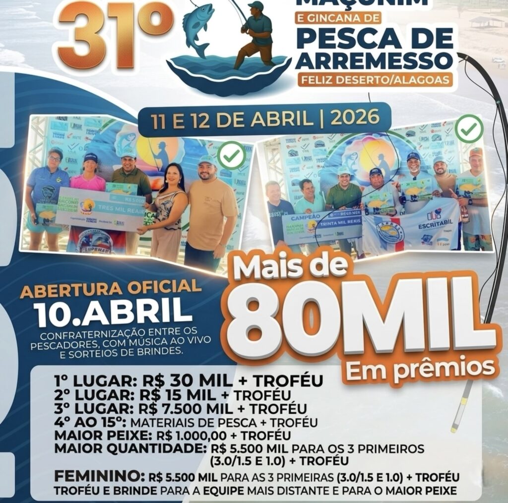 A cidade de Feliz Deserto vive mais um fim de semana de festa com a realização do 31º Festival do Maçunin de pesca e arremesso. O evento, que já faz parte do calendário cultural do município, reúne moradores e visitantes na praça de eventos, fortalecendo as tradições locais e promovendo lazer para toda a comunidade.