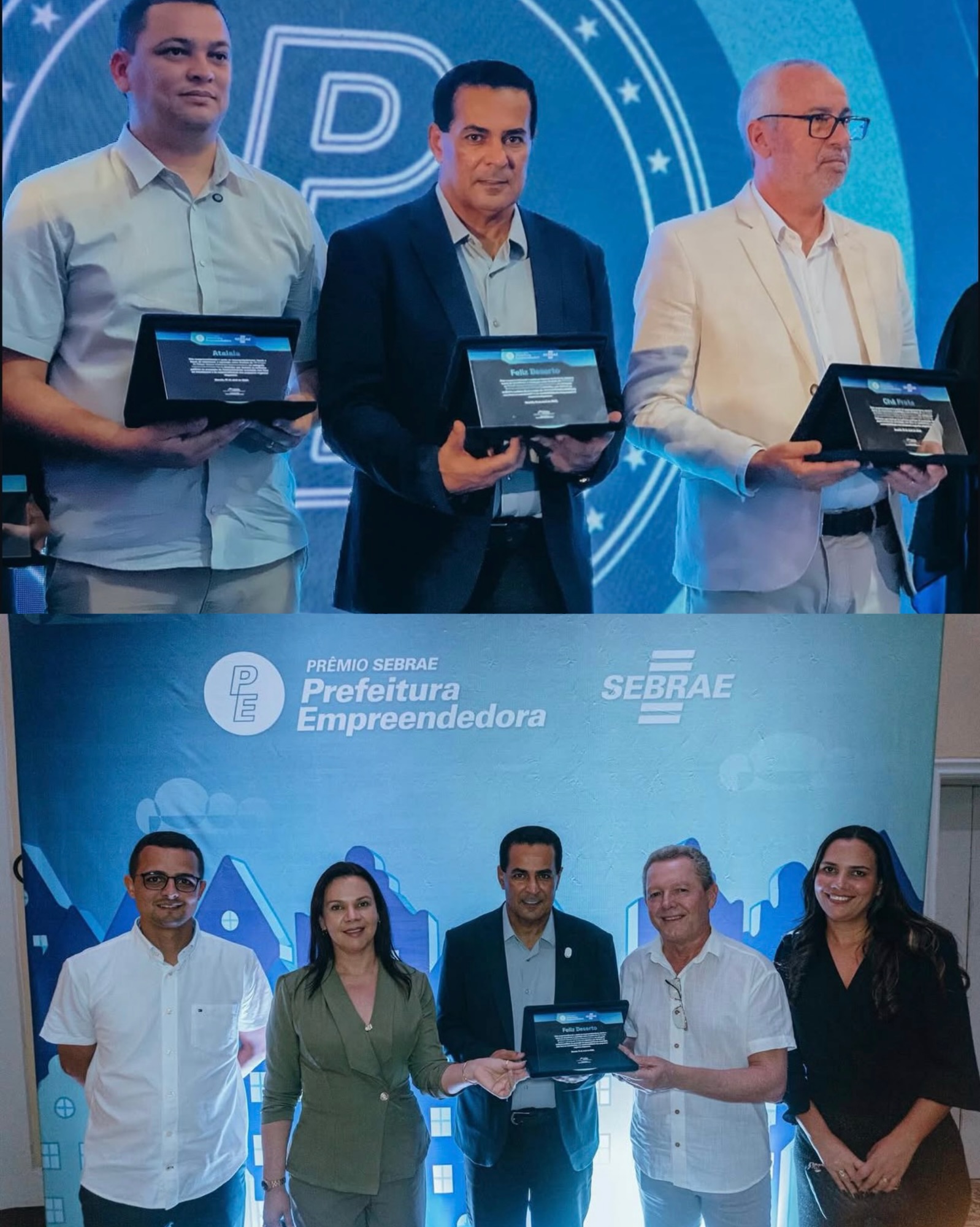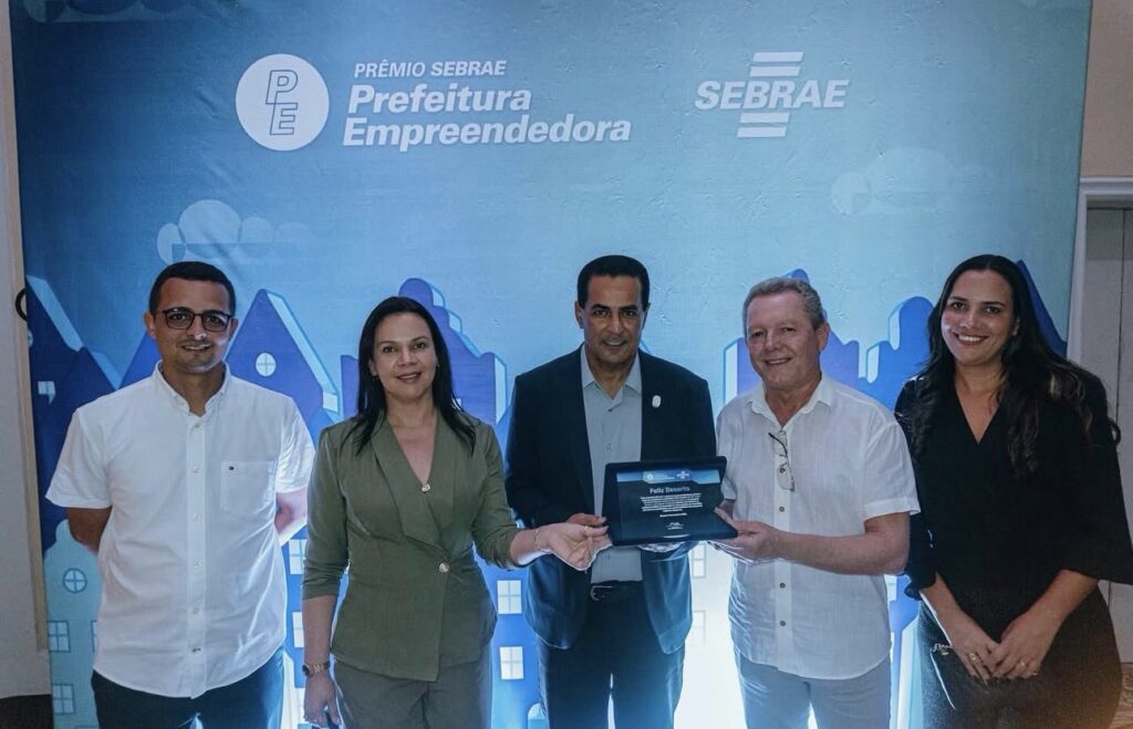 O prefeito Jorge Nunes, acompanhado dos secretários Sanderval Nunes, Niane Nunes e Zé Galego, recebeu o reconhecimento em uma cerimônia realizada pelo Sebrae nesta segunda-feira (13). O momento simboliza o esforço conjunto da gestão municipal em fortalecer políticas públicas voltadas ao empreendedorismo e à valorização da identidade local.